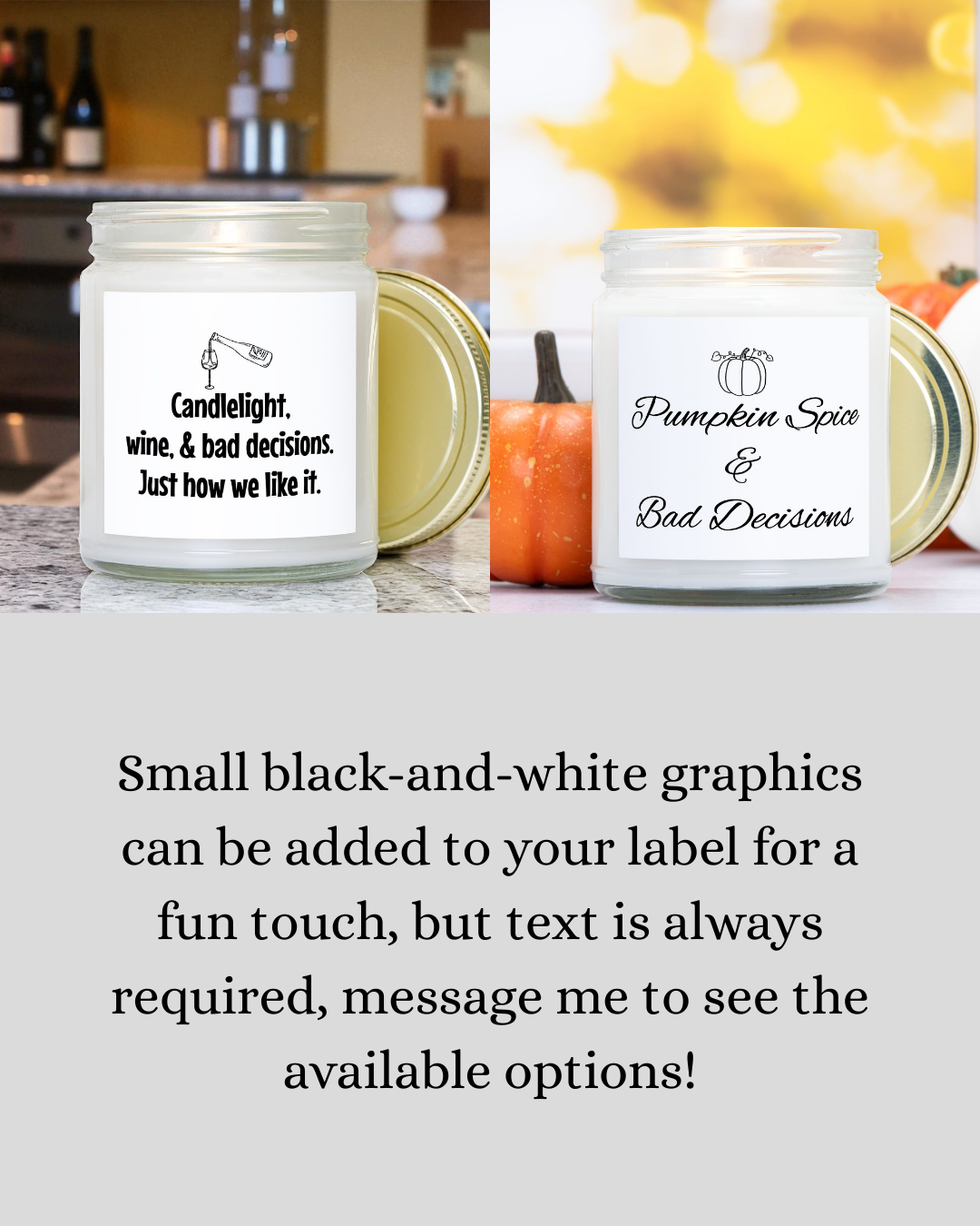 ***Note, Small black-and-white graphics can be added to your label for a fun touch, but text is always required, message me to see the available options!